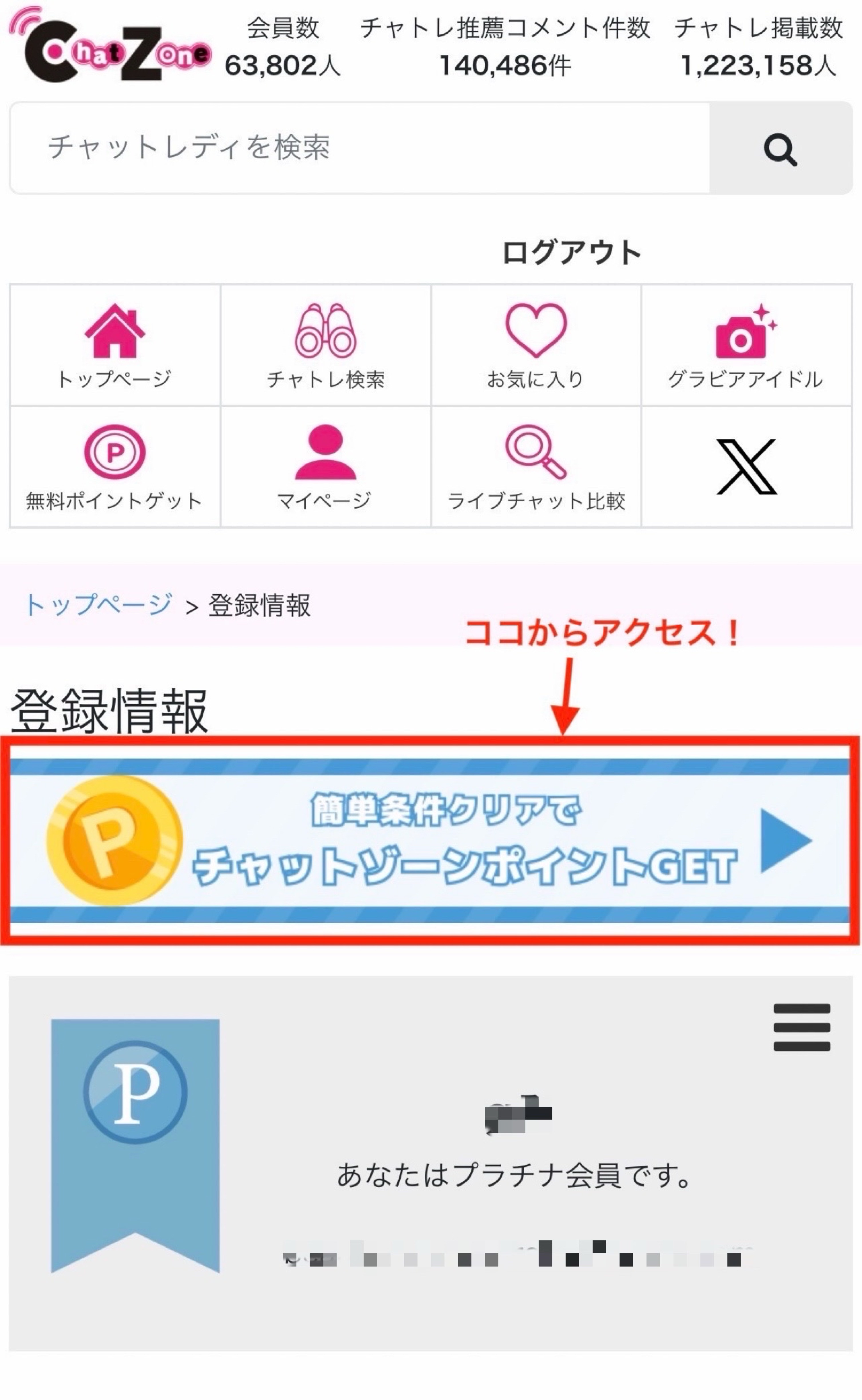 下記バナー画像(簡単条件クリアでチャットゾーンポイントGET)をクリック。