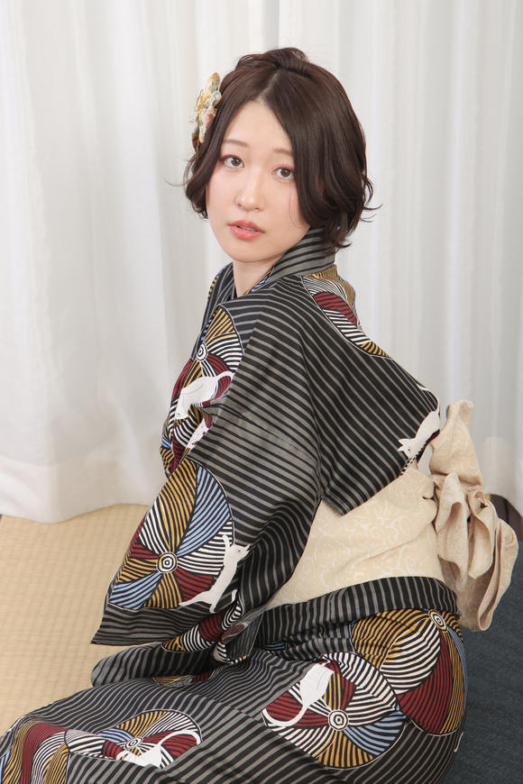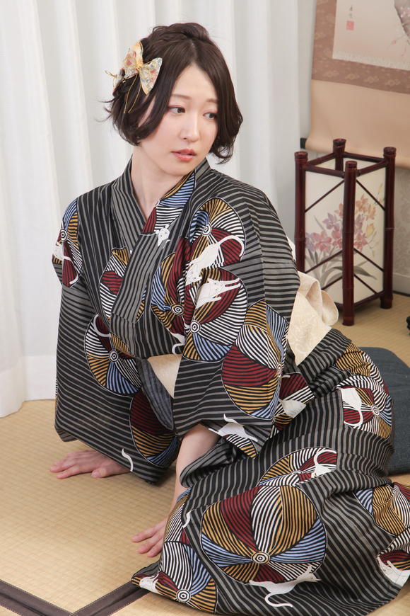 床に身を預けながらの妖艶なポージングでは、着物の隙間から覗く太ももや、滑らかなヒップラインがまさに官能の極みです。