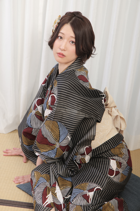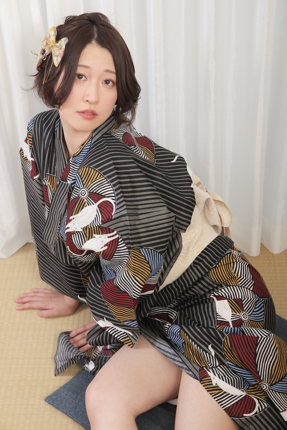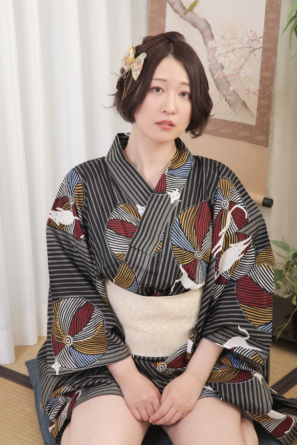 艶やかな着物の隙間から覗く太もも、滑らかなヒップラインはまさに官能の極み。布越しに感じさせるふくらみが見る者の下半身を刺激します。